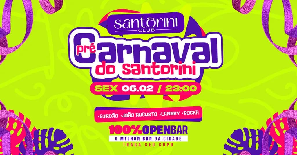 PRÉ CARNAVAL DO SANTORINI - 100% OPEN BAR ❤️🔥